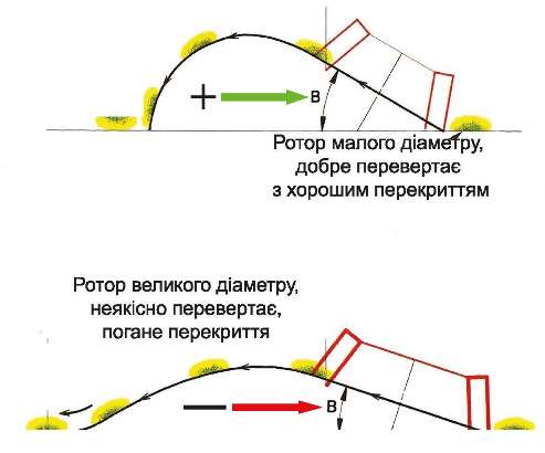 - слід надавати перевагу роторам невеликого діаметра, здатним працювати під високим кутом нахилу до горизонту з відсутністю «мертвих» зон та повним перевертанням валка, щоб прискорити висушування;