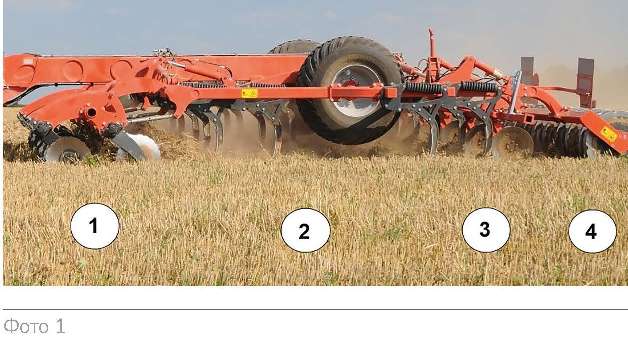 - два ряди профільованих вогнутих дисків. Диски мають нахил як по відношенню до напрямку руху, так і до вертикалі, а кути нахилу становлять, відповідно, 16° і 6°. Завдяки цьому диски отримують високу якість обробітку і перемішування, а також готують рівне посівне ложе;