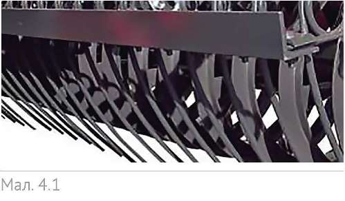 Краще вирівнювання грунту і розподіл решток досягаються рядом граблин (мал. 4.1), які поставляються на замовлення.