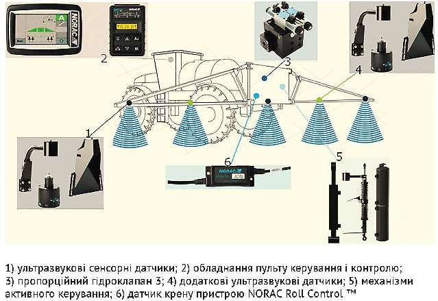 Подібною системою автоматичного підтримання стабільної висоти штанги NORAC Control оснащуються самохідні обприскувачі багатьох фірм (рис. 4). Обприскувачі, залежно від рельєфу поля, можуть комплектуватися моделями системи — Slant Control™ та Total Control™.