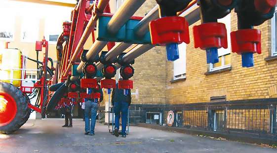На сьогодні набуває поширення концепція монтажу декількох систем для внесення різних пестицидів на одному обприскувачі, що дозволяє одночасне використання декількох засобів захисту (рис. 6). У відповідності з картами забур’яненості або концентрації шкідників, захворювань рослин і супутникової навігації, автоматична система обприскувача на певній ділянці поля вмикає одну з магістралей для внесення відповідного пестициду.