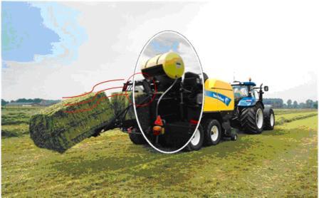 зав’язок тюка. Інформація про масу, вологість, ділянку, консервант тощо надходить до бирки через радіочастотний передавач, завантажується у процесор управління даними в той час, як формується тюк, а потім передається на бирку. Для зчитування інформації з неї про тюк використовується інфрачервоний сканер.