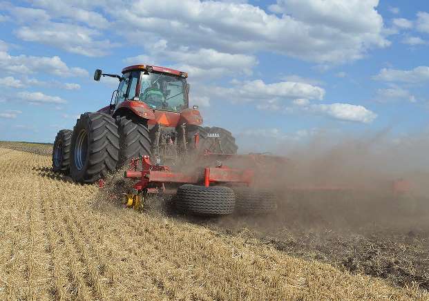 «В середньому Carrier, працюючи з трактором Magnum 290, за 8-годинну зміну обробляв у нас 80 га. Витрата пального при обробітку сухого ґрунту на глибину 5-7 см становила 7 л/га, а коли ґрунт не сухий — 5-6 л/га, — каже Євген Бондарчук. — Від початку роботи цього дискового культиватора у нас поломок не було, з обслуговування особливо важких нюансів немає: 10 точок мащення — зранку змастив за кілька хвилин і все. При роботі все легко регулюється та налаштовується. Крім того, Carrier дуже зручний під час перевезення між полями — буквально за хвилину він складається у транспортне положення, в якому має низький центр тяжіння та ширину лише 2,5 м».