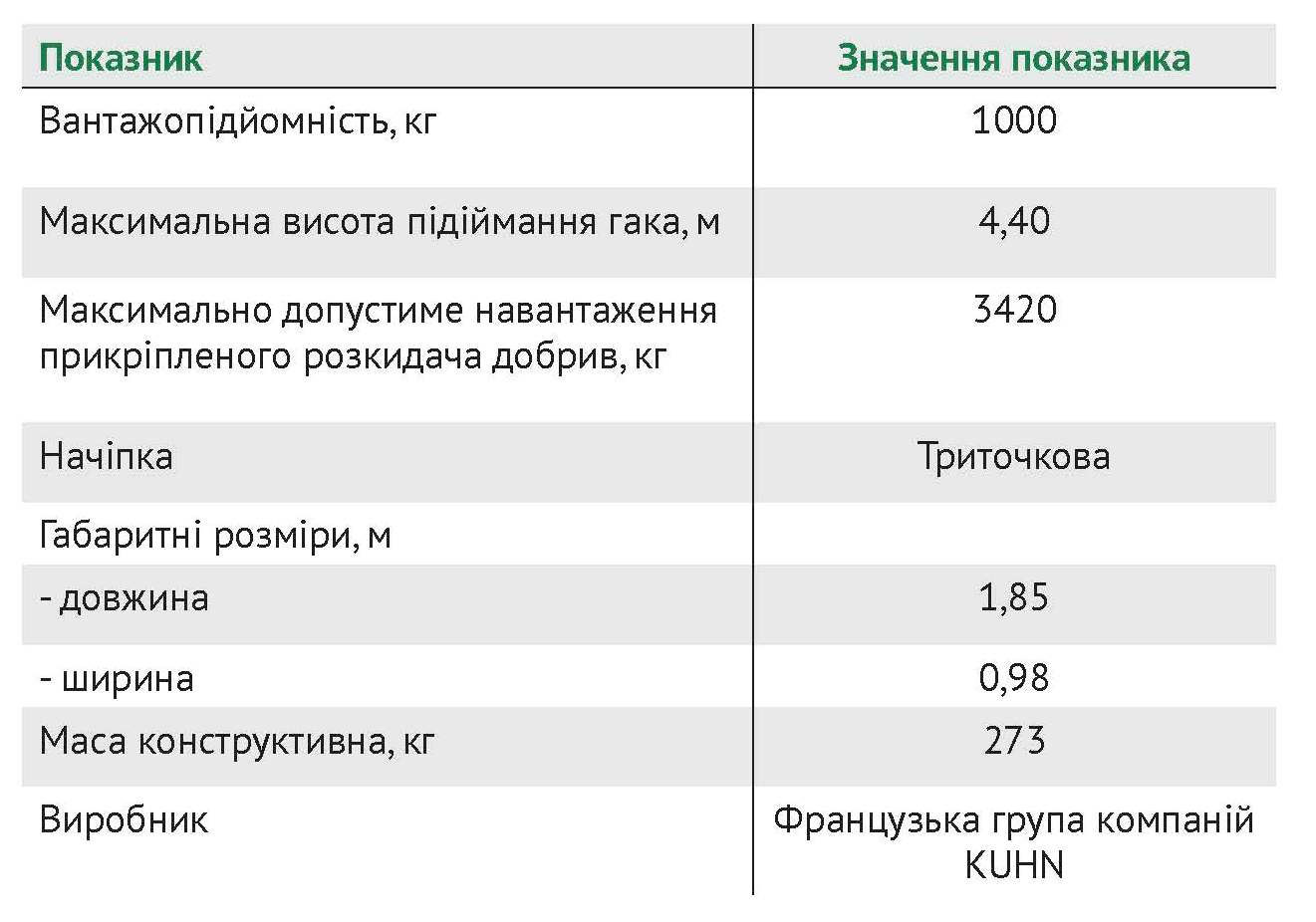 У країнах Західної Європи тверді мінеральні добрива також завантажують у розкидачі з використанням підіймача великих мішків вантажопідйомністю до 1000кг. Підіймач LEVSAK начіплюється на трактор разом із розкидачем. Мінеральні добрива доставляються в поле тракторним чи автомобільним транспортним засобом у мішках і завантажуються у розкидач за допомогою підіймача. Загальний вигляд підіймача подано на рис. 2, а технічну характеристику - в табл. 4.