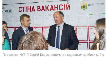 На ярмарок підтягнулися також групи студентів з інших аграрних вишів: із Сум, Винниці, Умані, Житомира. Професор Сергій Кваша, проректор НУБіП з навчальної і виховної роботи, сказав, що вважає такий формат спілкування студентів і роботодавців зручним і правильним. «Є чудові вакансії, і ми маємо можливість поборотися за ці місця, — наголосив проректор, — надто я звертаюся до завтрашніх магістрів».
