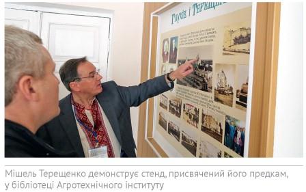 Родоначальник династії Терещенків — купець із Глухова Артемій, що мав красномовне прізвисько Карбованець. Після падіння кріпацтва 1861 року, потроху скупивши угіддя збіднілих дворян, він став агропідприємцем і меценатом. Торгував цукром, будував лікарні, школи, сиротинці. Дід нинішнього мера Михайло Терещенко (1888–1956) після руйнації царату став міністром у Тимчасовому уряді Російської Імперії. Змушений був емігрувати після узурпації влади Леніним. Батько мера Петро Терещенко (1919–2004), відомий у Європі вчений-хімік, працював над технологіями виробництва біопалива.