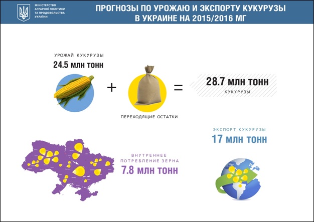 Зокрема, як повідомляє міністр в своїй колонці на Ліга.Бізнес, валовий збір цієї культури очікується на рівні 24,5 млн тонн. Враховуючи наявні перехідні залишки, пропозиція кукурудзи на ринку в Україні становитиме 28,7 млн тонн. З них потреби внутрішнього ринку складають 7,8 млн тонн. Отже, на експорт планується відправити майже 17 млн тонн.