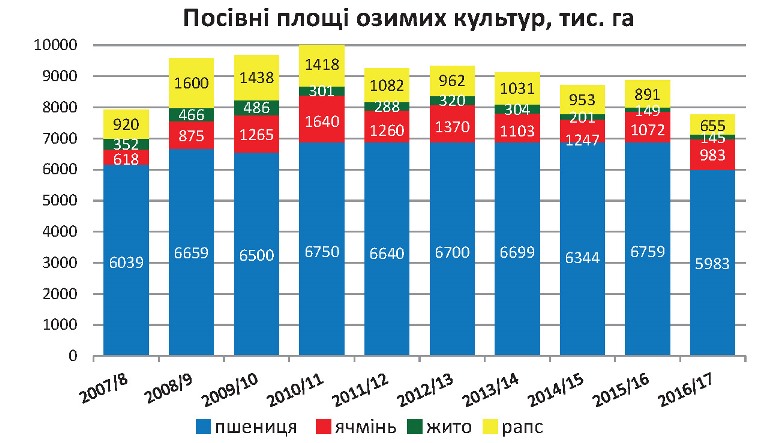 Отож, зважаючи на вищевикладені фактори, прогноз «УкрАгроКонсалту» посівних площ під урожай 2016 року становить 6–6,2 млн га.
