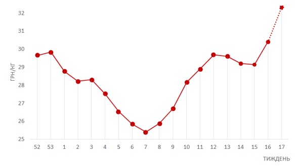 Згідно даних експертів, виробники з центральних областей відзначають жвавий попит, тому очікують реалізувати товарне поголів’я по 31-33 грн/кг.
