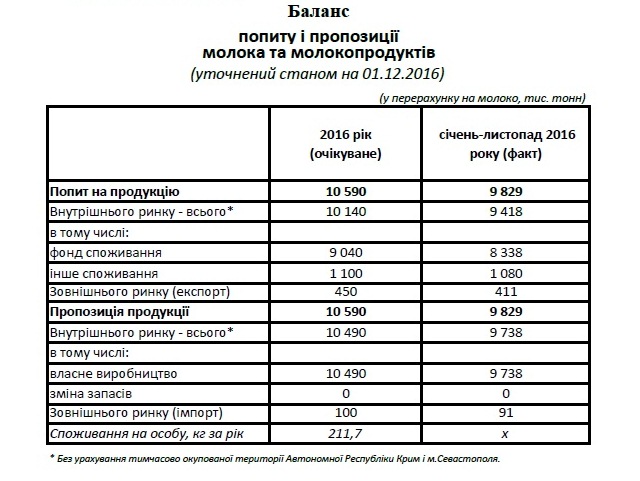 "За балансовими розрахунками, споживання молока і молокопродуктів в середньому на душу населення відстає на 2 кг від минулорічного показника та, за підсумками 11 місяців, становить 197 кг у розрахунку на особу", - додали експерти.