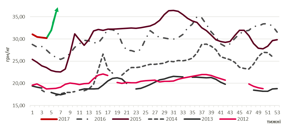 Очікування щодо подальшої цінової ситуації суттєво варіюють. Значна частка переробників очікує пониження цін, як що не у найближчі тижні, то ближче до кінця місяця: тоді роздрібна торгівля повністю інтегрує зміну закупівельних цін, а споживча активність послабиться з початком посту. Проте є і такі, що вважають таке здороження живця свиней закономірною (хоч і досить різкою) реакцією на меншу пропозицію, а також зростання виробничих витрат на вирощування свиней. Зокрема, за перший місяць року зернові інгредієнти кормів подорожчали в середньому на 1,2-5%, протеїнові корми додали в ціні 1-2%, дизпаливо - на 3,3% у середньому, а з першого лютого виробників очікує здороження електроенергії.