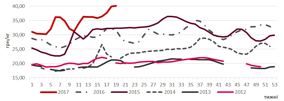 У повідомленні зазначається, що за результатами торгів 5 травня окремі виробники навіть змогли «розписати» товарні партії на 0,25-0,5 грн/кг дорожче, оскільки основна частина їх колег реалізувала найбільші обсяги тижнем раніше. З огляду на це решта операторів змогли втримати ціни на досягнутому рівні.