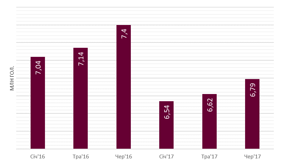 З початком червня число свиней відновилося у порівнянні з їх кількістю на початку року та попереднього місяця. Проте порівняння помісячної динаміки цього показника у 2016-му році та цьогоріч свідчить про слабші темпи зростання.